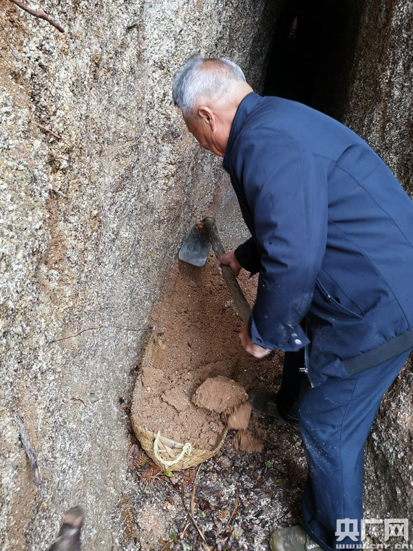 在老吳的帶領(lǐng)下,6名鑿山隊員手拿錘子鋤頭,提著簸箕,我一錘,你一鏟開始鑿山。
