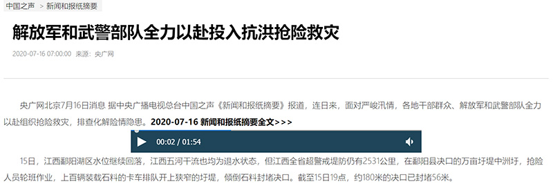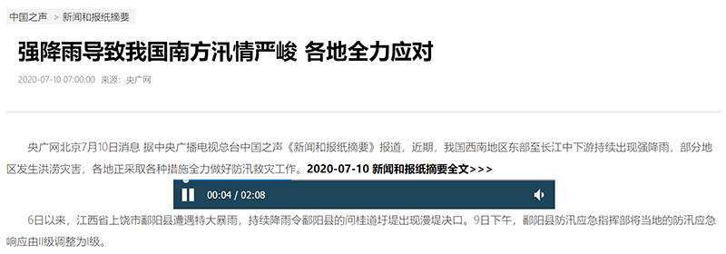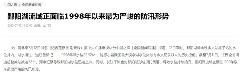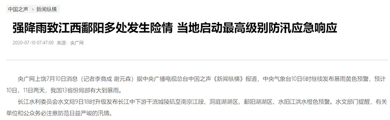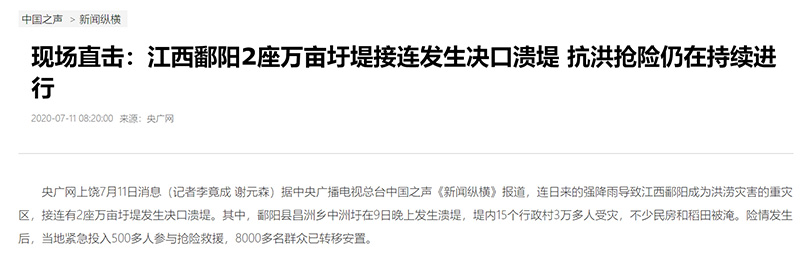 中央廣播電視總臺(tái)央廣2020江西抗洪報(bào)道“四個(gè)前所未有”