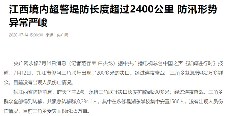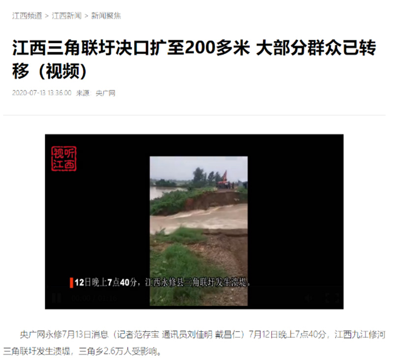 全媒體報(bào)道:江西三角聯(lián)圩決口擴(kuò)至200多米 大部分群眾已轉(zhuǎn)移