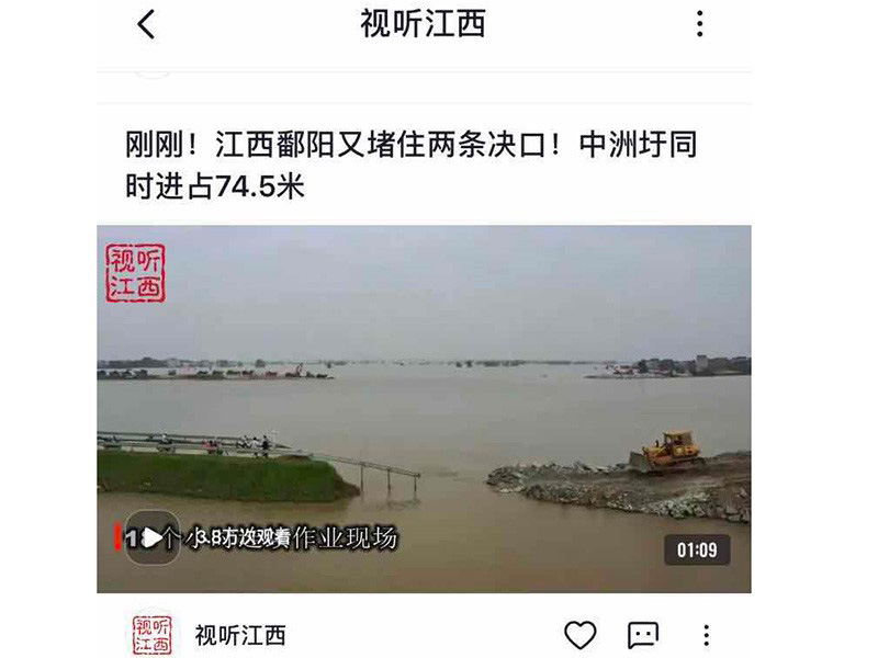 央視頻“視聽江西”報(bào)道:江西鄱陽(yáng)又堵住兩條決口!中洲圩同時(shí)進(jìn)占74.5米