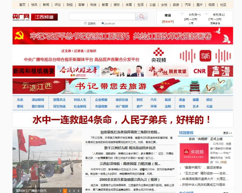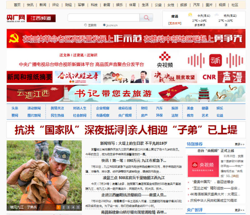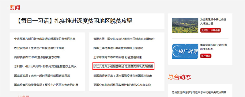 央廣網(wǎng)首頁(yè)要聞報(bào)道:長(zhǎng)江九江段水位超警戒線 江西落實(shí)防汛抗災(zāi)措施