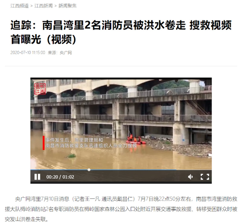 全媒體報(bào)道:南昌灣里2名消防員被洪水卷走 搜救視頻首曝光