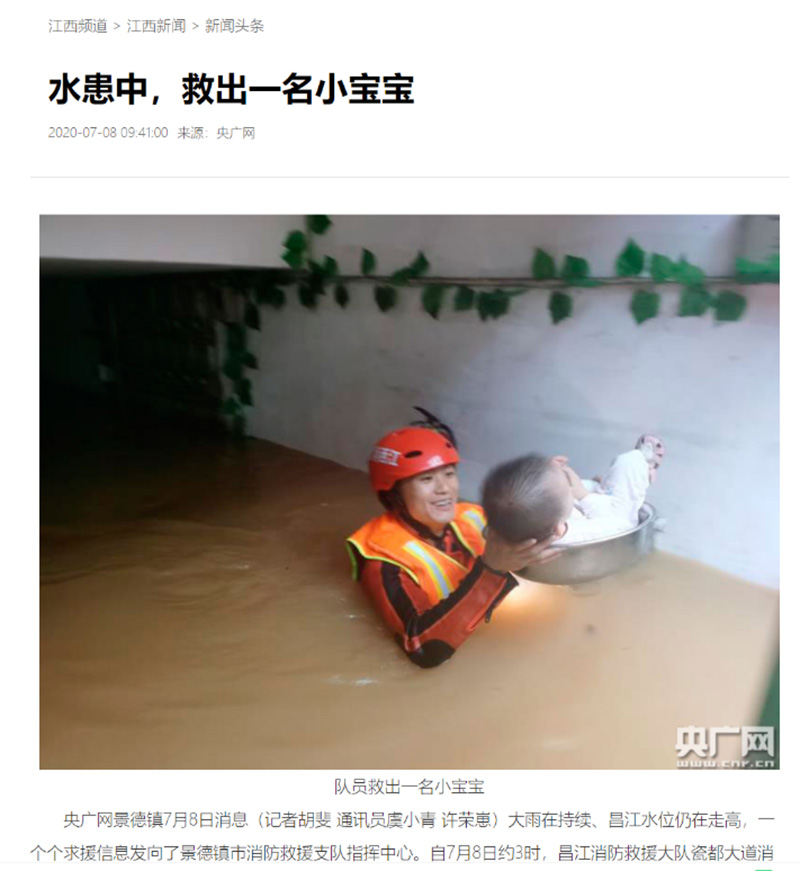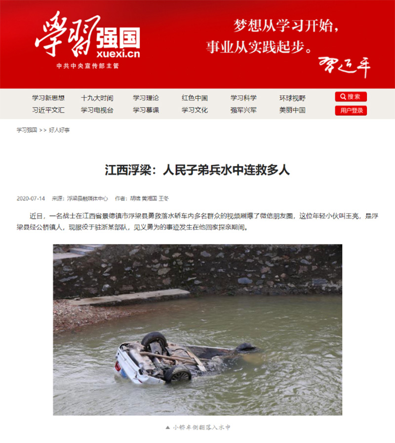 《學(xué)習(xí)強(qiáng)國(guó)》轉(zhuǎn)載:江西浮梁:人民子弟兵水中連救多人