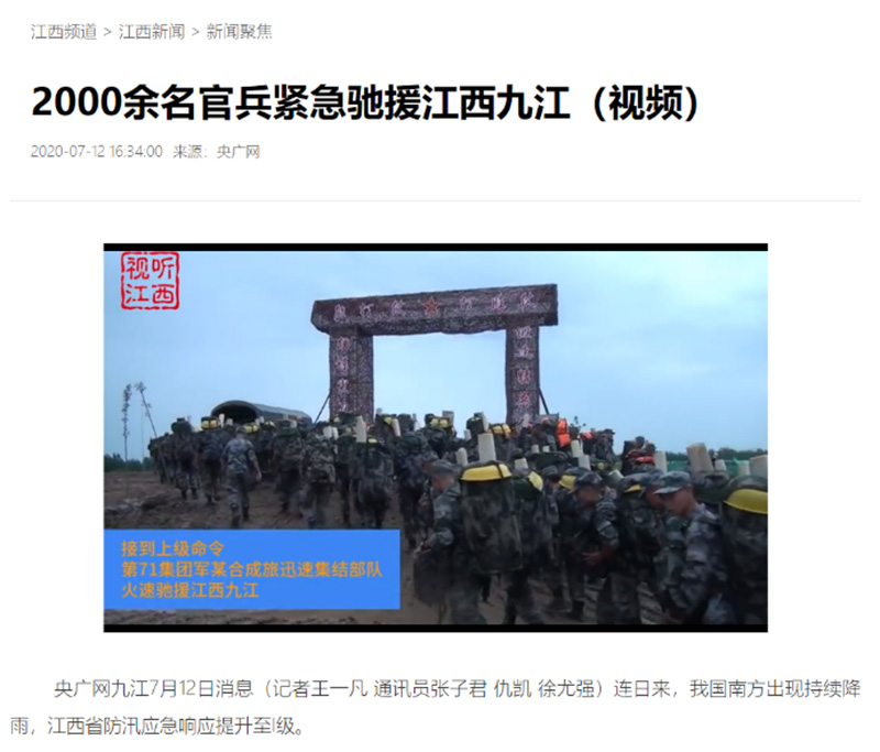 全媒體報(bào)道:2000余名官兵緊急馳援江西九江