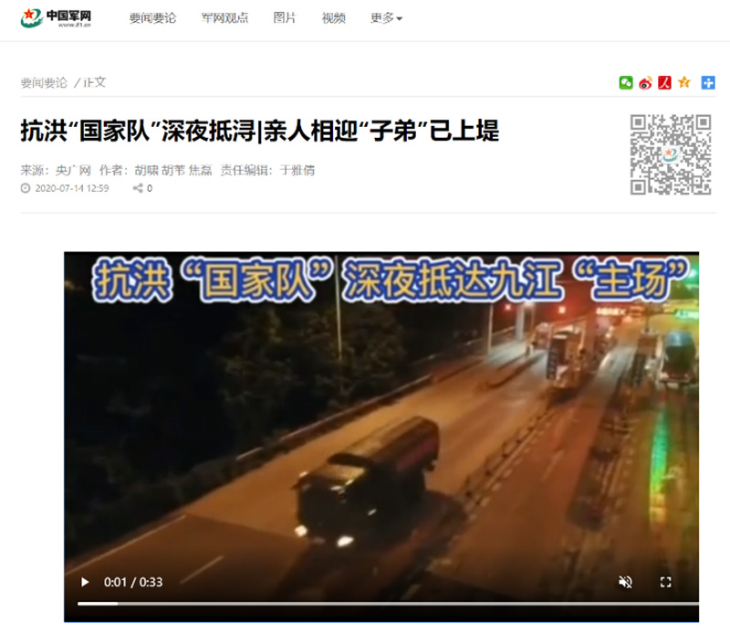 《中國(guó)軍網(wǎng)》轉(zhuǎn)載:抗洪“國(guó)家隊(duì)”深夜抵潯 親人相迎“子弟”已上堤