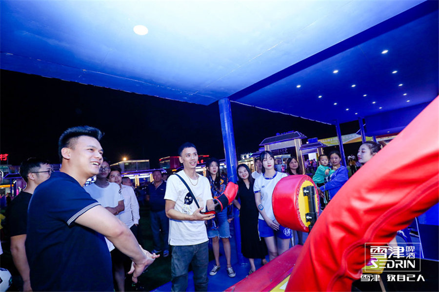 主舞臺(tái)周邊,還設(shè)置了極具當(dāng)?shù)靥厣拿朗硡^(qū)、冰啤屋、暢飲區(qū)和互動(dòng)游戲區(qū)等區(qū)域,琳瑯滿目的特色區(qū),吸引眾多現(xiàn)場(chǎng)觀眾圍觀。大家品美食、喝啤酒、印彩繪、賞美景,充分運(yùn)用視覺、聽覺、味覺的多重結(jié)合,與自己人熱情互動(dòng);充分領(lǐng)略一場(chǎng)充分鄉(xiāng)景、鄉(xiāng)土、鄉(xiāng)俗、鄉(xiāng)情、鄉(xiāng)食等特色的地方“旅游盛宴”,讓人流連忘返。