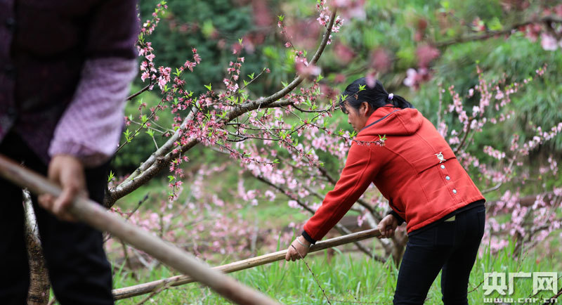 三灣九隴村群眾在黃桃基地勞作