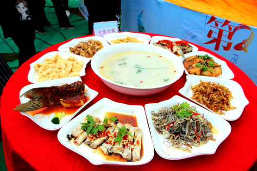 地鮮莫過于筍,河鮮莫過于魚,從古至今魚肴都深得人們喜愛。在活動現(xiàn)場,廚師們以魚為主料,采用煎、炒、蒸、煮、雕花、拼盤等不同的烹飪方式制作佳肴。一會兒,188道色香味俱全的精品佳肴以及特色小吃呈現(xiàn)在評委和游客們面前。在評委們品嘗魚肴的同時,舞臺上的文藝演出也是一道靚麗的風(fēng)景。婀娜多姿的舞蹈、宛轉(zhuǎn)悠揚的歌唱、悅耳動聽的奏樂、驚險刺激的雜技等眾多精彩節(jié)目,引得現(xiàn)場觀眾掌聲不斷。眾多表演中,以萬安農(nóng)民畫展示最具當(dāng)?shù)靥厣,模特身穿印有萬安風(fēng)景的定制服飾,用走秀的方式詮釋萬安勞動人民獨特的藝術(shù)思維和濃厚的生活氣息,讓人眼前一亮。
