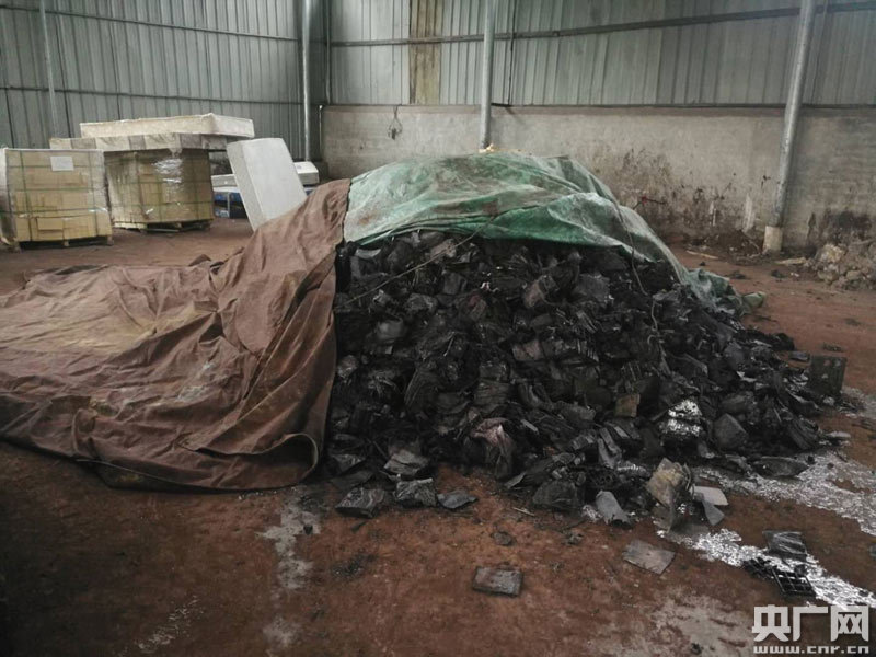 該作坊生產(chǎn)車間為一座鐵皮大棚,占地約300平方米,內(nèi)有兩條生產(chǎn)線,生產(chǎn)設(shè)備正在運(yùn)轉(zhuǎn),但現(xiàn)場(chǎng)無(wú)人。經(jīng)調(diào)查發(fā)現(xiàn),該作坊未辦理環(huán)評(píng)手續(xù)。原材料為拆解后的廢舊鉛蓄電池,采用落后的生產(chǎn)工藝熔煉金屬。