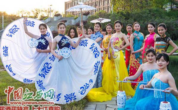 景德鎮(zhèn)陶院學(xué)子用服飾精彩演繹瓷都“四大名瓷”(圖片來自景德鎮(zhèn)陶瓷學(xué)院宣傳部)