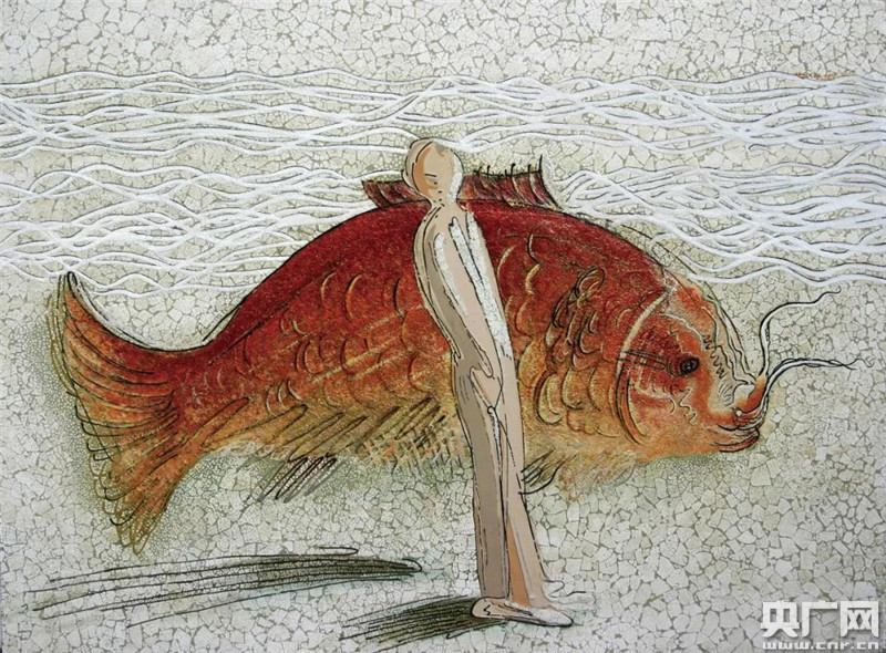 實際上,在他的作品中,都市、紅魚、空間、肌理所承載的不只是符號化的語言,而已經(jīng)成為最本真的內(nèi)心體驗,如其作品中反復(fù)出現(xiàn)的遨游的紅魚,其所傳遞的信息在不可觸摸的表層之下卻具有一種當(dāng)代人類共同的情緒。也許,可以看成是他對某種已悄然遠(yuǎn)去的事物的追憶,并通過自己的藝術(shù)語言,將這種追憶演化為一種更為接近心靈空間的描述,從而形成與自然之道的共鳴。