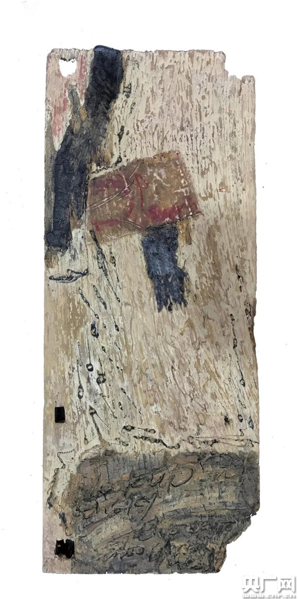 對“漆性”本體審美的研究成為王向陽在第三階段的創(chuàng)作探索。從文化意義的角度詮釋,漆可以被譽為天造神物,孕于東方的漆樹,經(jīng)割漆、過濾、曬制等步驟而髹于萬物,這一過程令人驚詫,充滿神秘。同時,其與畫者形成身體感觸,乃至過敏、潰爛,達(dá)到一種靈與肉的深度交流,從而化為一體,創(chuàng)造出古樸自然的神性狀態(tài),并付于其藝術(shù)的永恒生命。王向陽以新的藝術(shù)形態(tài)表達(dá)了這一感悟,在這一時期,他的作品已不局限于漆的平面形態(tài),而是轉(zhuǎn)向了更為開放的空間語義。如《隱秘的鏈》《蠻荒的記憶》《文字的游戲》等作品,在原初形態(tài)的木質(zhì)材料上髹以紅、黑兩色的神秘符號,蒼茫的印記似乎回應(yīng)著遠(yuǎn)古先民的聲音,由此,其作品已經(jīng)達(dá)到了一個新的境界,成為文明的印記。