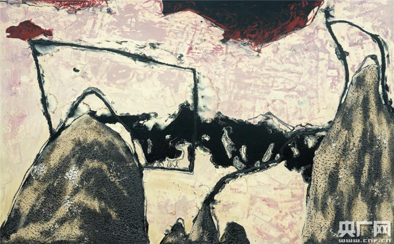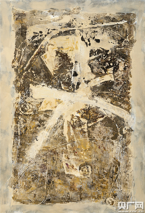 可見,王向陽在創(chuàng)作中已經(jīng)突破了傳統(tǒng)漆畫中某種程式化和套路化的沿襲,融合了象征主義、解構(gòu)主義,甚至是行動畫派等領(lǐng)域的觀念和圖式,其作品呈現(xiàn)了當(dāng)代語境下的審美世界,塑造了與當(dāng)代觀念、東方審美相吻合的藝術(shù)語言,顯示了一種更為成熟的睿智。
