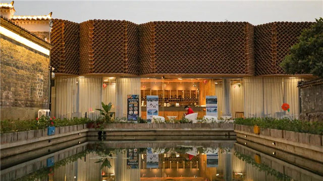 「蜂巢咖啡館」就藏在馬頭墻身后,陶制瓦片堆疊而成的大屋頂,有3.5米高,形似蜂巢。