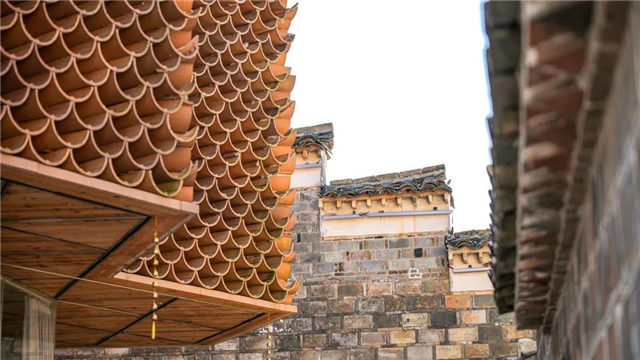 此外,還將「瓦」這一傳統(tǒng)建筑元素,串聯(lián)了整個(gè)村落:如用瓦作的漏窗、瓦疊的屋頂、瓦鋪的小路,似乎都在和老房子的屋頂相呼應(yīng)。