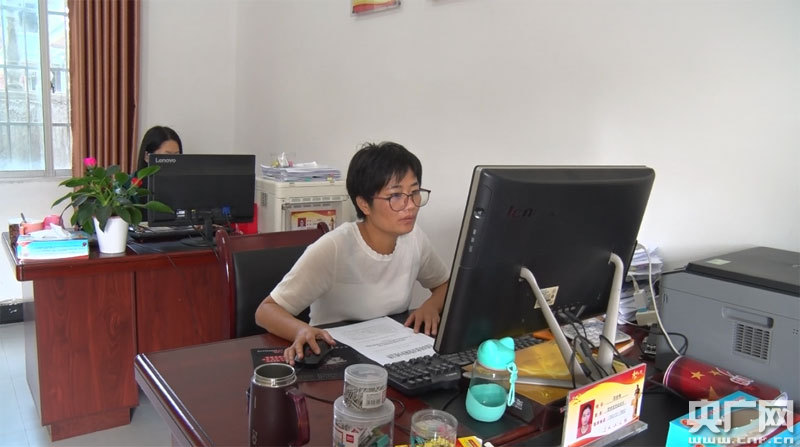 邵多梅在脫貧攻堅(jiān)站工作(央廣網(wǎng)發(fā) 通訊員易健 攝)