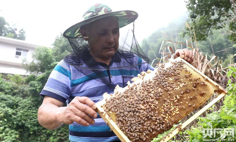 左和平查看蜜蜂養(yǎng)殖情況