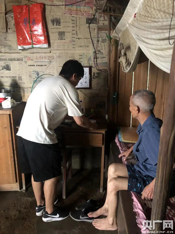 費(fèi)誠(chéng)在貴溪市樟坪畬族鄉(xiāng)雙圳村黃沙組村民張良生家里扶貧(央廣網(wǎng)發(fā) 通訊員供圖)