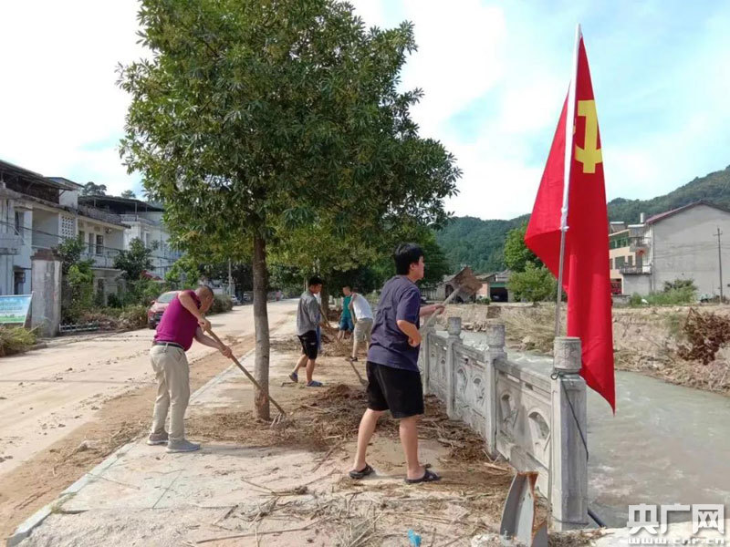 費(fèi)誠(chéng)與雙圳村干部整治衛(wèi)生環(huán)境(央廣網(wǎng)發(fā) 通訊員供圖)
