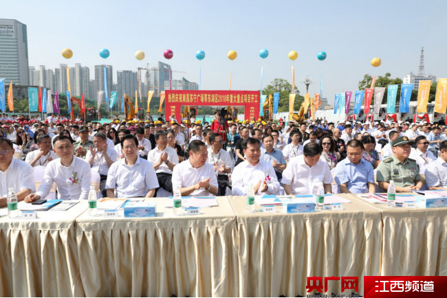江西省省委常委、南昌市市委書記殷美根與蘇寧控股集團(tuán)董事長(zhǎng)張近東在南昌蘇寧廣場(chǎng)奠基儀式中啟動(dòng)開工球。