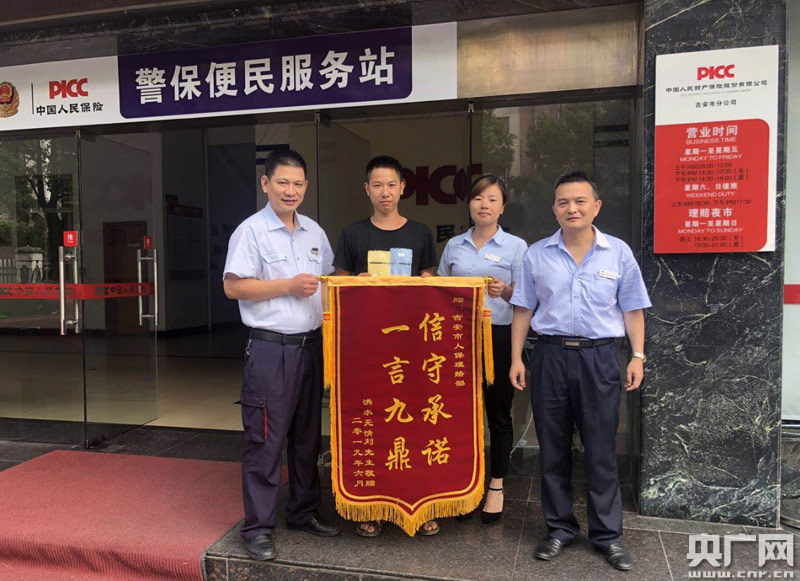 央廣網(wǎng)南昌6月26日消息(記者王一凡 通訊員袁小斌)6月26日上午,客戶劉先生手舉一面寫著“信守承諾,一言九鼎”的錦旗大步走進了人保財險吉安市分公司,專程來感謝該公司提供的優(yōu)質高效理賠服務。