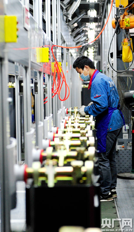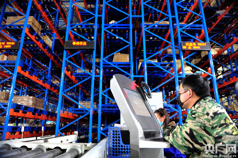 3月2日,在江西百勝智能有限公司,操作員通過智能選料設(shè)備準(zhǔn)備零部件(央廣網(wǎng)發(fā) 通訊員李慳/攝)