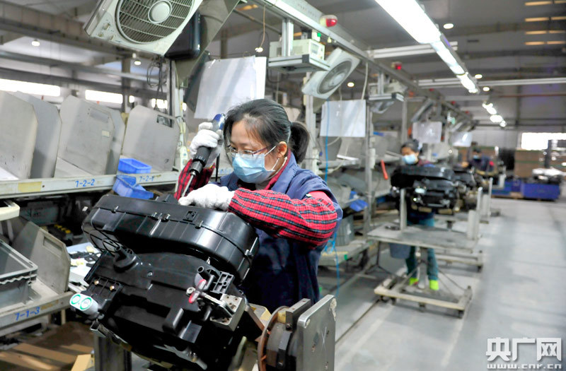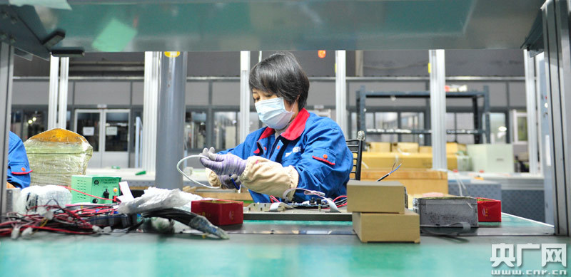 3月2日,在江西百勝智能有限公司,工人在自動道閘生產(chǎn)線上組裝產(chǎn)品(央廣網(wǎng)發(fā) 通訊員李慳/攝)
