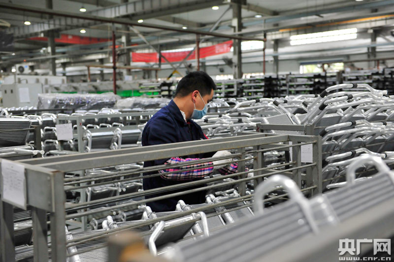 3月2日,在江西新電汽車空調(diào)系統(tǒng)有限公司,工人轉(zhuǎn)運整理零件(央廣網(wǎng)發(fā) 通訊員李慳/攝)
