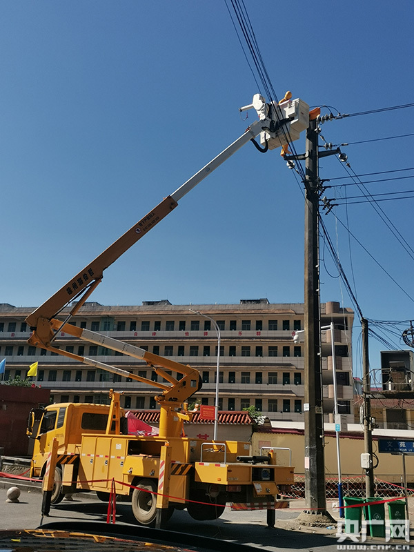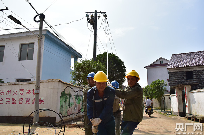 搶修人員對(duì)新立電桿架線(央廣網(wǎng)發(fā) 通訊員提供)