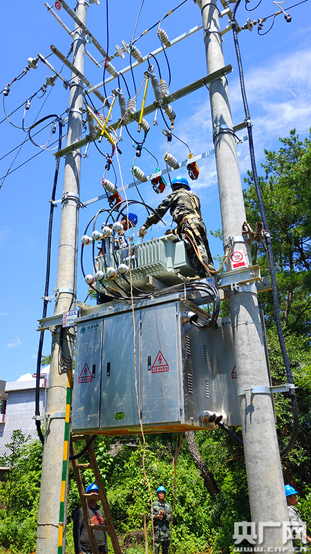 搶修人員對(duì)燒毀變壓器進(jìn)行更換(央廣網(wǎng)發(fā) 通訊員提供)