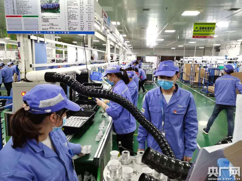 貴溪企業(yè)生產(chǎn)LED燈的繁忙景象(央廣網(wǎng)發(fā) 通訊員供圖)