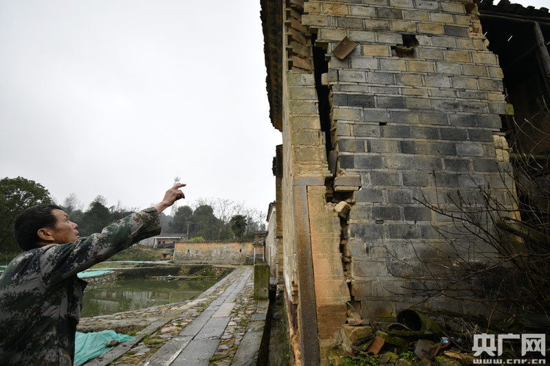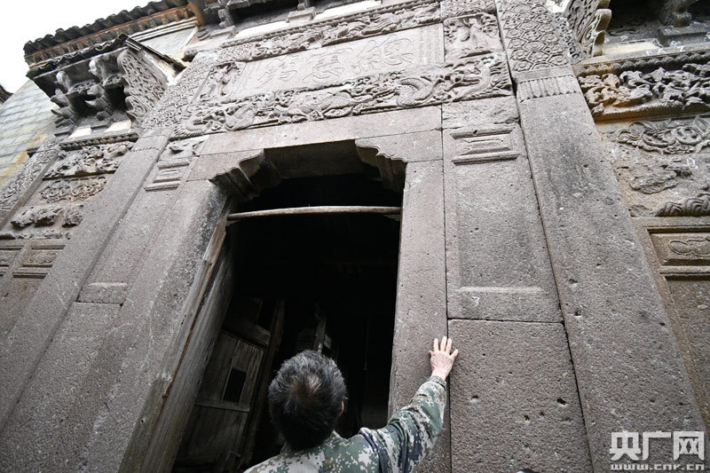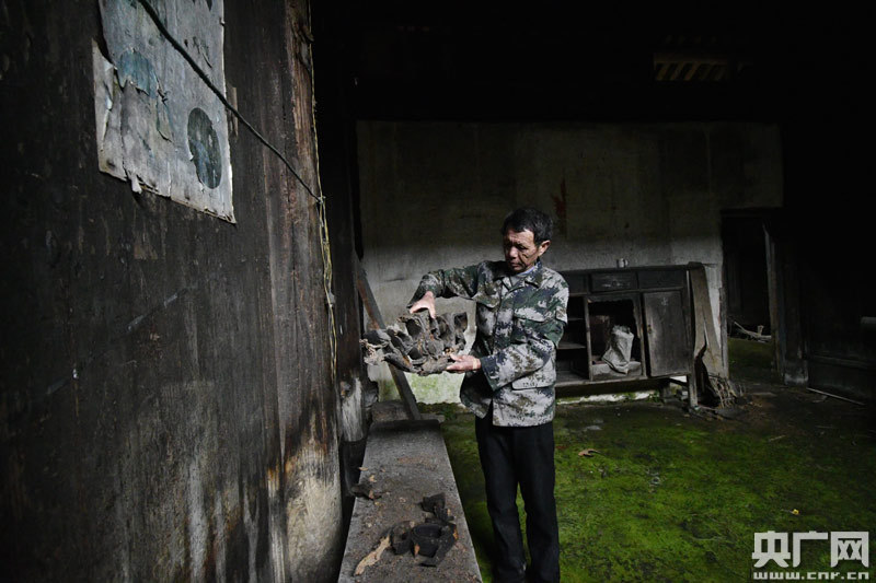2019年4月22日,江西省金溪縣合市鎮(zhèn)游墊古村文保員胡慶華在古村巡視,看到因年久失修而損毀的精美木雕時,他的內(nèi)心感到十分沉重。(央廣網(wǎng)發(fā) 通訊員鄧興東 攝)