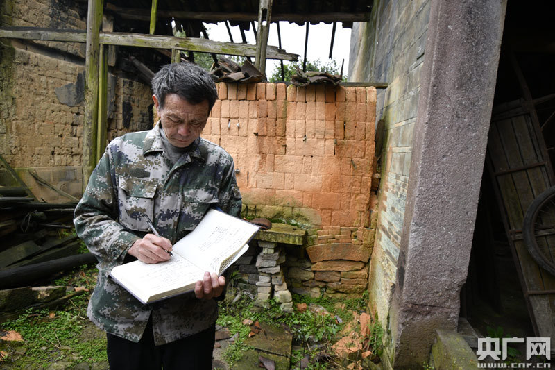 2019年4月22日,江西省金溪縣合市鎮(zhèn)游墊古村文保員胡慶華在古村巡視,對于發(fā)現(xiàn)的問題隨時記錄在案,并及時向縣文物管理部門報告。(央廣網(wǎng)發(fā) 通訊員鄧興東 攝)