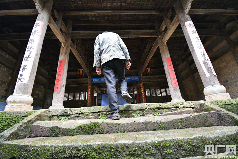 2019年4月22日,江西省金溪縣合市鎮(zhèn)游墊古村文保員胡慶華在古村胡氏祠堂巡視,檢查祠堂是否有漏。(央廣網(wǎng)發(fā) 通訊員鄧興東 攝)