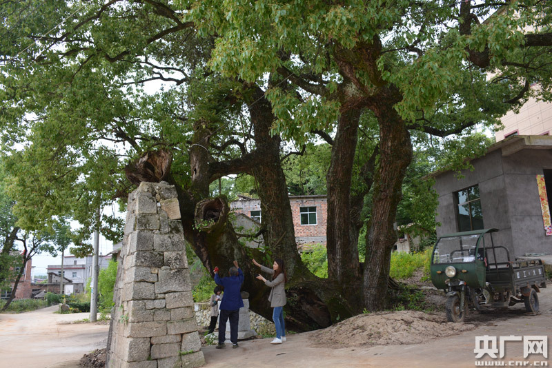 在鵝湖鎮(zhèn)張村足祿源自然村,一直保存著一棵古老的樟樹。這棵歷經(jīng)千年的老樟樹,就是當(dāng)年電影《閃閃的紅星》中潘冬子被吊挨打時的那棵樟樹。因為經(jīng)歷太多的風(fēng)吹雨打,現(xiàn)在老樟樹的枝干有的已經(jīng)傾斜,為了更好地保護(hù)這棵老樟樹,當(dāng)?shù)氐南嚓P(guān)部門用大塊的石頭壘成塔狀,用來支撐傾斜的樹干。電影中當(dāng)時的柳溪鎮(zhèn)已經(jīng)建立起了紅色政權(quán),潘冬子也參加了“打土豪,分田地”的農(nóng)民運(yùn)動,地主惡霸胡漢三便準(zhǔn)備出逃。有一天,潘冬子挑著柴經(jīng)過胡漢三家門口時,被正準(zhǔn)備倉皇逃命的胡漢三攔住盤問,逼問冬子他父親潘行義的下落,冬子怎么都不肯說,胡漢三便喪心病狂地把冬子吊在了這棵老樟樹上進(jìn)行拷打……村民汪九林、鄭順好指著樟樹右邊的一塊空地說道,當(dāng)年“胡漢三”的房子就是在這里。如今,距離電影拍攝已經(jīng)過去了40多年,這棵老樟樹依舊生機(jī)盎然、枝繁葉茂,翠綠的枝葉散發(fā)著勃勃生機(jī)。它就像一位歷史的見證者,一直安靜地站在這里,向來這里的人們一一講述著當(dāng)年的故事。