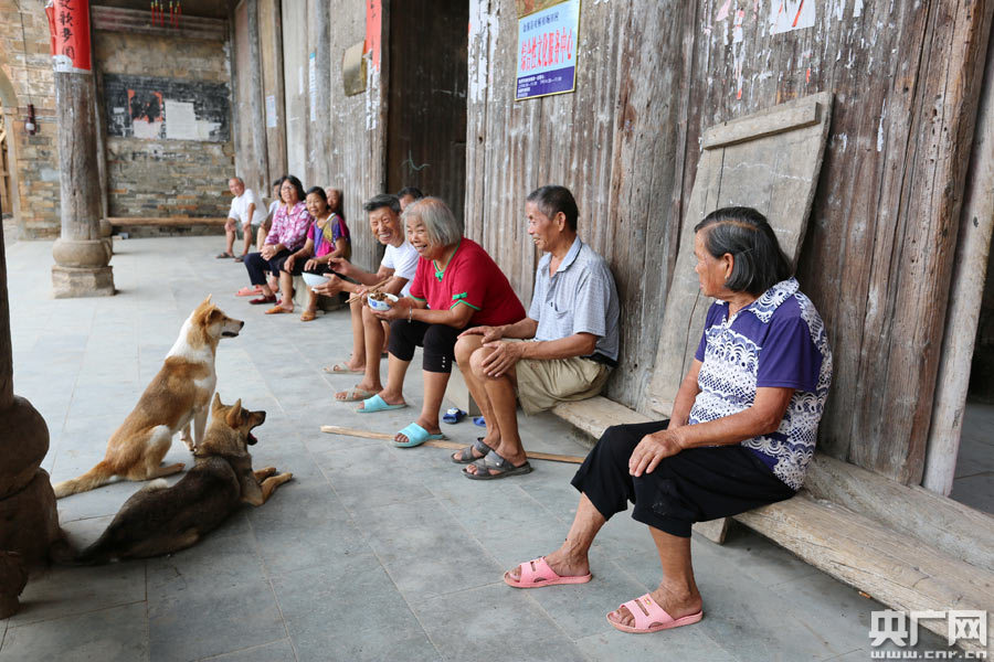 2019年8月29日,江西省撫州市金溪縣對(duì)橋鎮(zhèn)旸田村村民在保存完好的古祠堂前樂(lè)享慢生活。(鄧興東 攝)