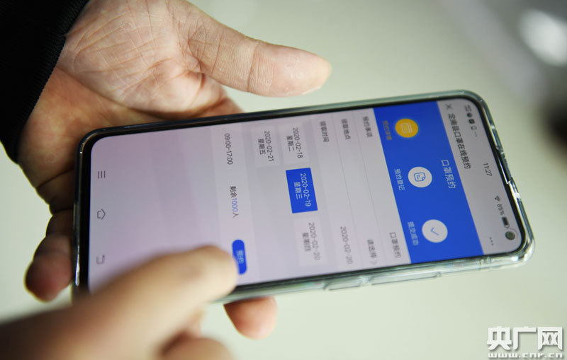 “掃二碼填信息,預約成功后,第二天在規(guī)定時段到就近網點領口罩,網上預約操作簡單,口罩領取也沒扎堆聚集!碧炀沛(zhèn)居民曾保富領到口罩后,現場為旁邊群眾傳授起口罩預約“技能”。
