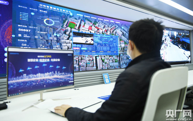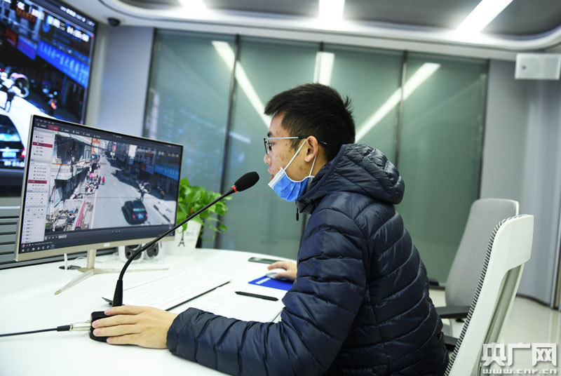 “為配合防疫工作,請布衣路超市門口聚集人員迅速散離,并請穿黃色夾克的女士佩戴好口罩……”2月16日,定南城區(qū)布衣路監(jiān)控視頻立柱上傳來一段廣播,而在智慧定南指揮中心,值班人員正盯著大屏幕,實時查看該處人群集聚散離情況。