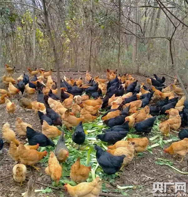 熊龍焱的“寶貝”,是他放養(yǎng)在山林里的800余只土雞。“純綠色喂養(yǎng),不用任何飼料。”熊龍焱麻利地往地上撒著菜葉,戴著橡膠手套的雙手顯得格外惹眼。