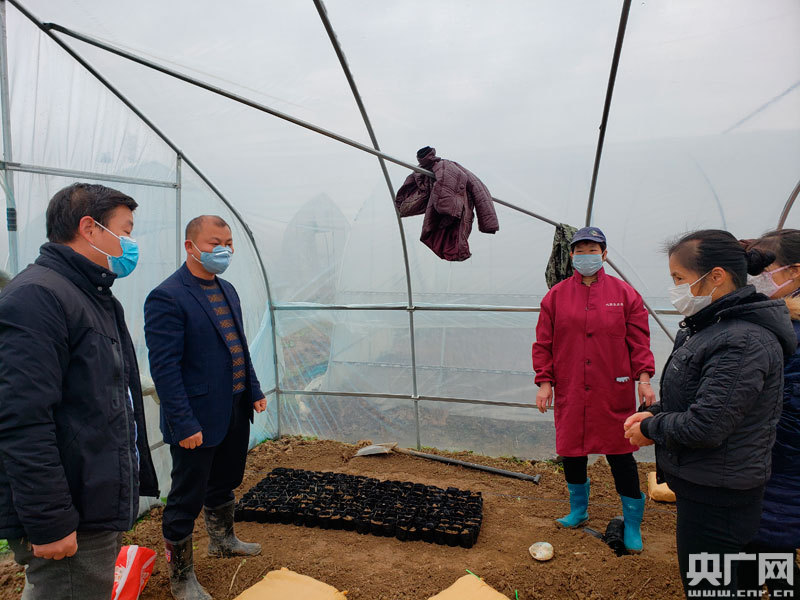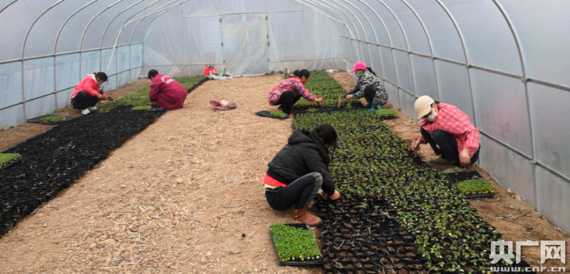 貧困戶在大棚內(nèi)育苗