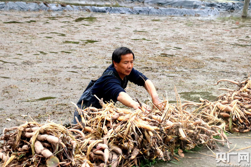 鄉(xiāng)廚王永兵在田里分散撒藕