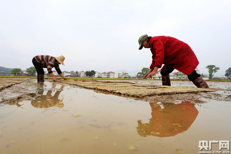安?h洲湖鎮(zhèn)中洲村村民在育秧
