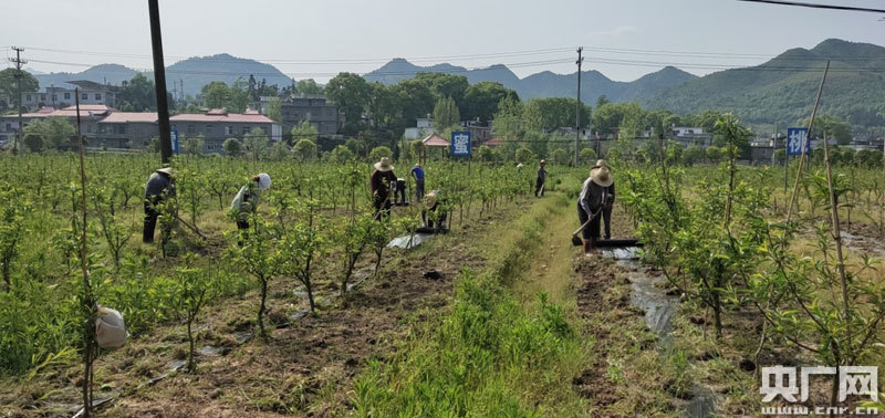 “我身體不好,不能外出打工,在秋雪蜜桃產(chǎn)業(yè)扶貧基地做事,一年能掙差不多1萬塊錢,不用出去也能在家門口賺到錢了,真好!闭谇镅┟厶耶a(chǎn)業(yè)扶貧基地做事的貧困戶鐘冬文喜悅溢于言表。