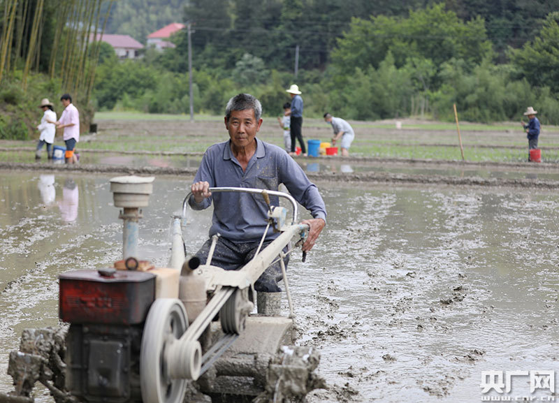 永新縣三灣鄉(xiāng)群眾在翻耕土地 種植早稻(央廣網(wǎng)發(fā) 通迅員李平 攝)