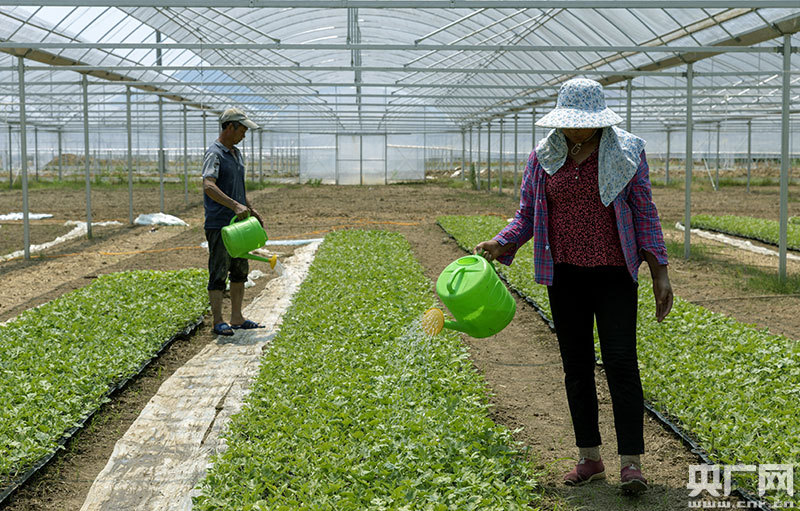 永新文竹鎮(zhèn)群眾正在給瓜秧澆水 準(zhǔn)備移栽(央廣網(wǎng)發(fā) 通迅員李平 攝)