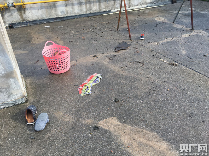 市民董小姐前兩天新洗一批鞋,曬于屋頂,今晨起來,發(fā)現(xiàn)已被風(fēng)雨雷電砸了場子,七零八落。