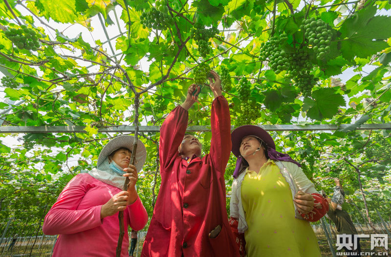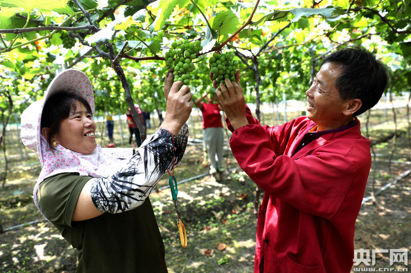 5月13日,江西省永新縣在中鄉(xiāng)在中村六月果歌葡萄基地,史小六帶領(lǐng)工人一起去勞作
