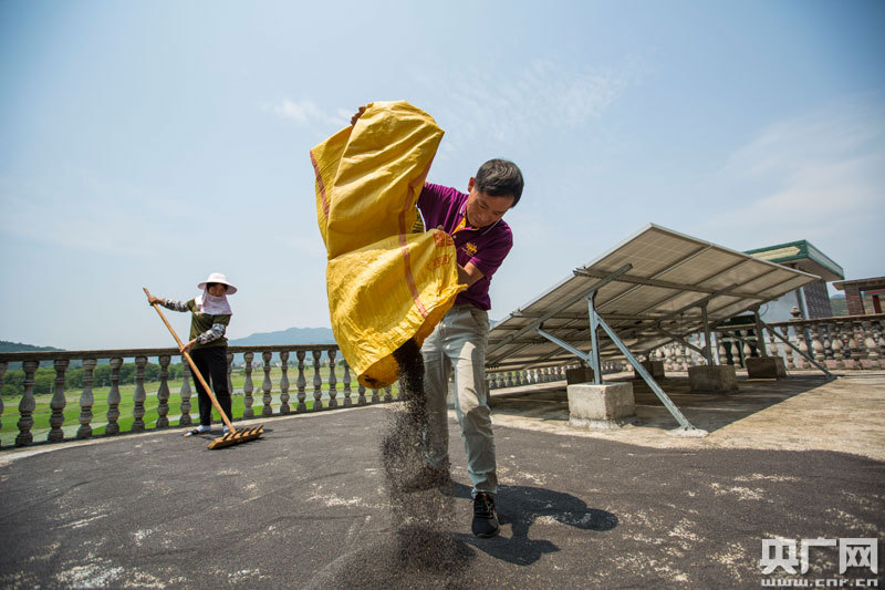 史小六夫妻在曬油菜籽