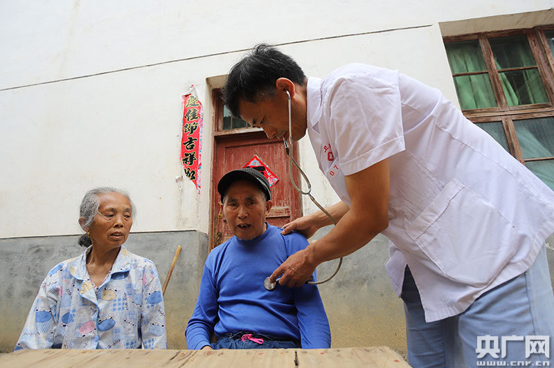 江西省吉安市安?h平都衛(wèi)生院家庭醫(yī)生在給太源村殘疾人羅晚云體檢(央廣網(wǎng)發(fā) 通訊員劉麗強(qiáng) 攝)