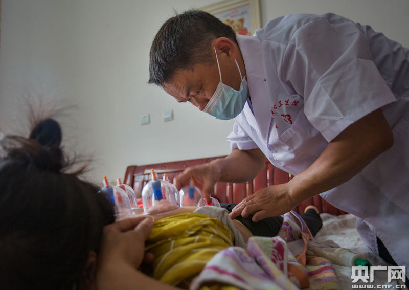 5月25日,江西省永新縣里田鎮(zhèn)下王村,陳時(shí)家上門為貧困群眾免費(fèi)提供拔罐服務(wù)